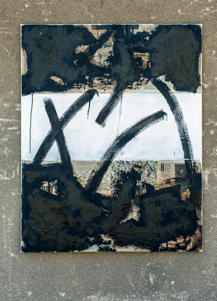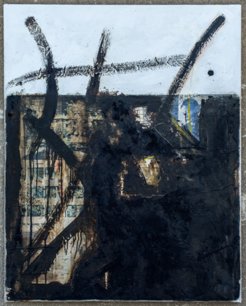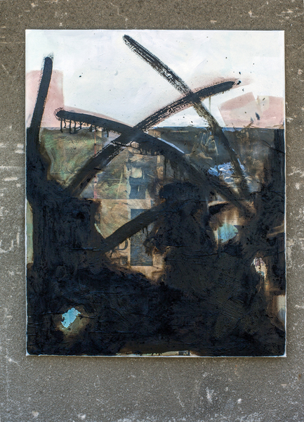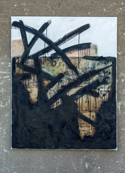 Dornige Großstadt, Bitumen/Öl auf Leinwand